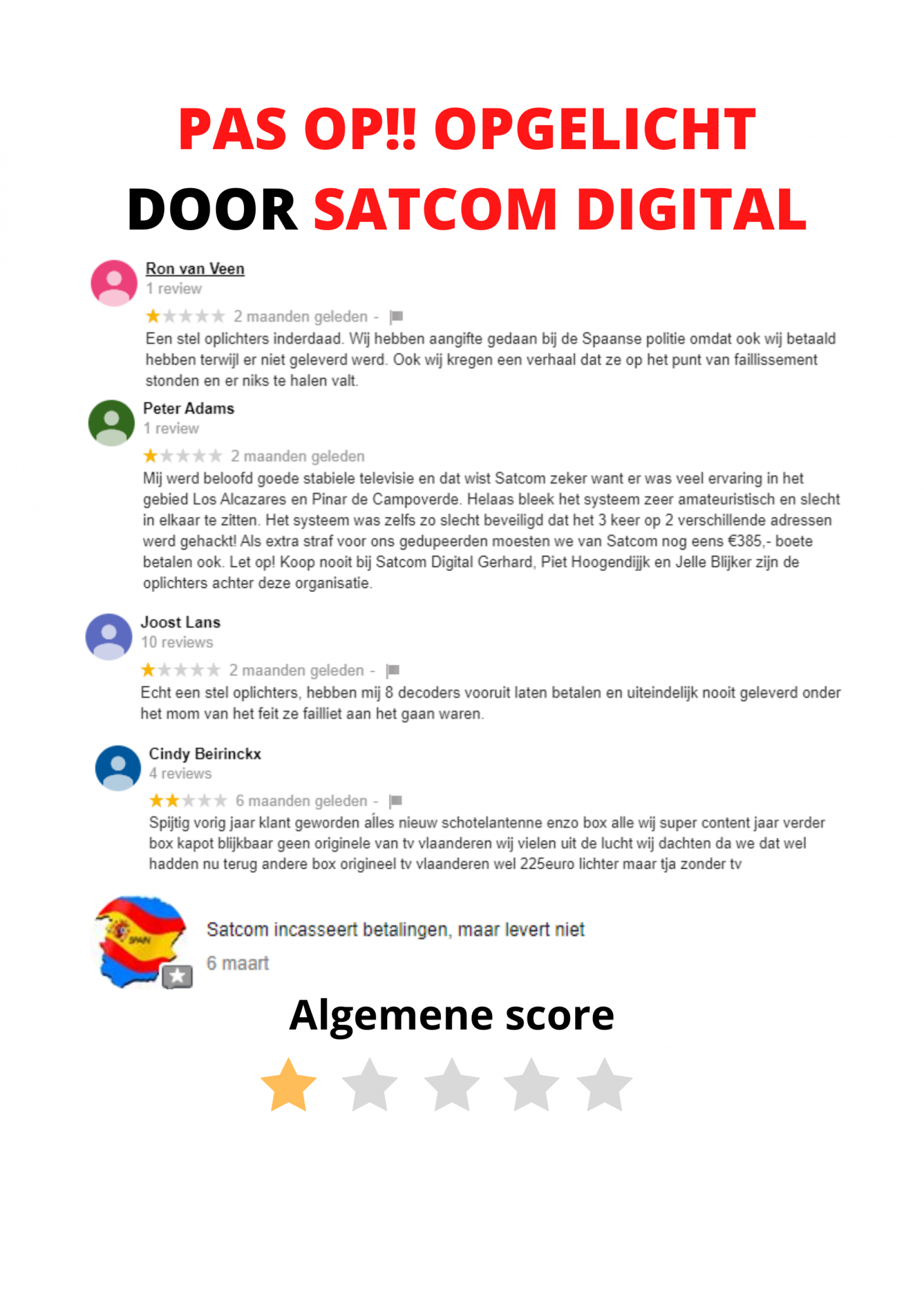 Klanten die ook zijn opgelicht door SATCOM DIGITAL (Geverifieerde Google & Facebook reviews)